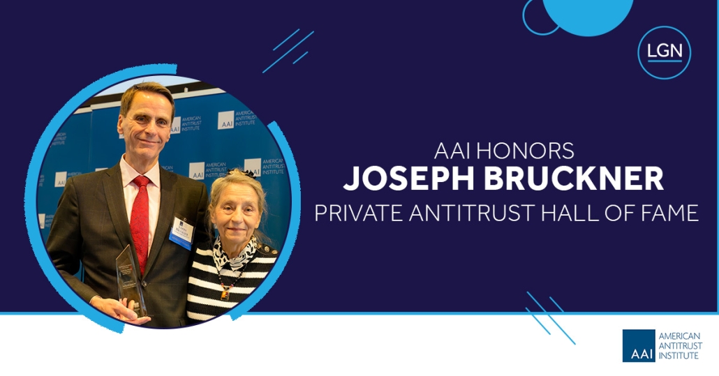 Lockridge Grindal Nauen is pleased to share that Partner Joe Bruckner was honored this month at the American Antitrust Institute’s Private Antitrust Enforcement Conference in Washington D.C., where he was inducted into the AAI Private Antitrust Enforcement Hall of Fame. The event brought together leaders from across the antitrust field who gathered to recognize Joe’s record of service, advocacy, and legal accomplishment.